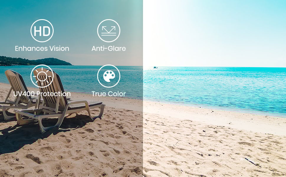Not only does it minimize the harm of UV rays to your eyes and eliminate glare. but it also provides you with a vivid and clear vision. ensuring unobstructed visibility during driving or outdoor activities.