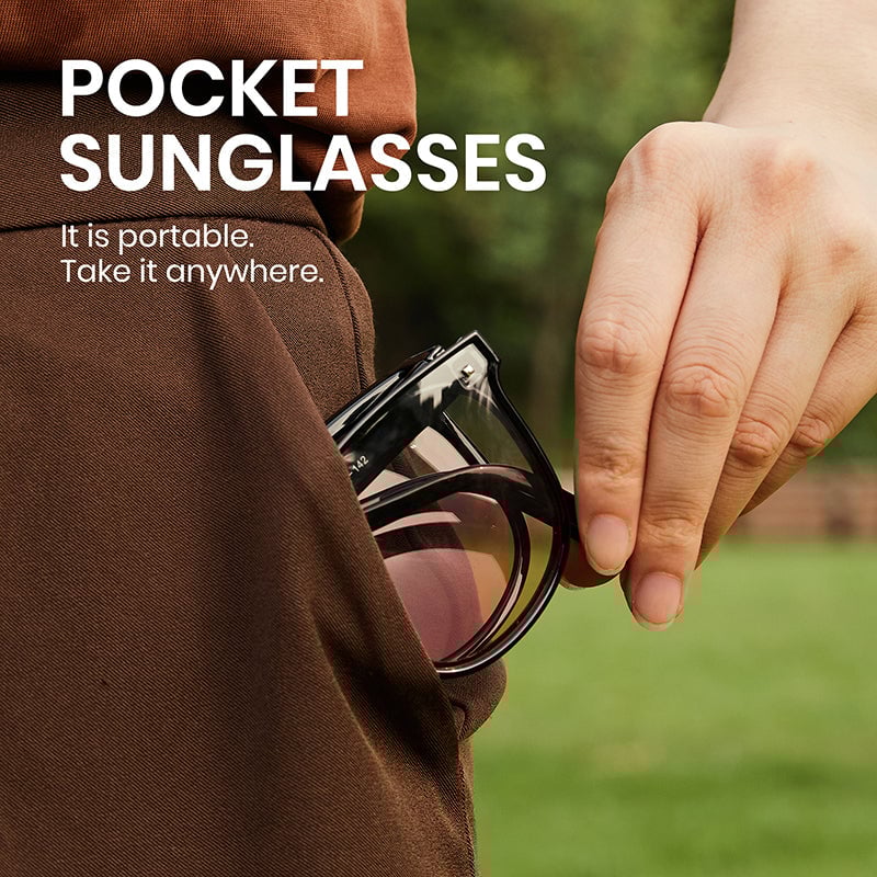 Every component of the sunglasses. from the frame to the temples. has been meticulously designed to neatly fold into a compact shape without compromising its sleek appearance and durability. The nose pads feature an anti-slip design. ensuring comfort and durability for extended wear.