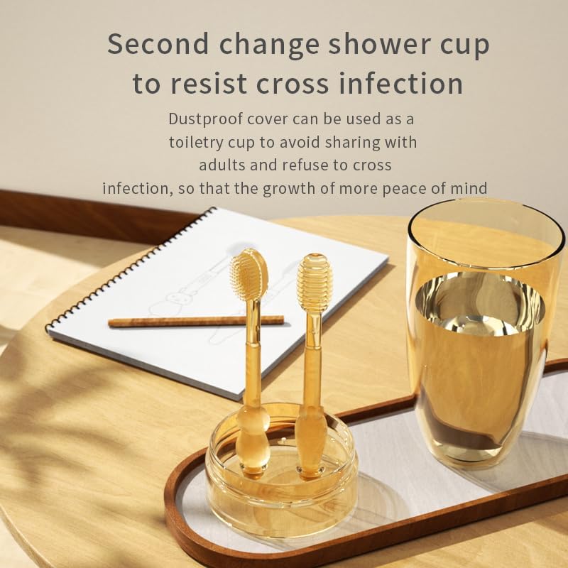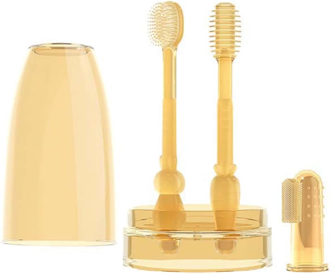 💝【Baby Silicone Toothbrush Set】Includes: 1 baby toothbrush; 1 baby tongue cleaner; 1 silicone baby finger toothbrush; 1 dust-proof cup.