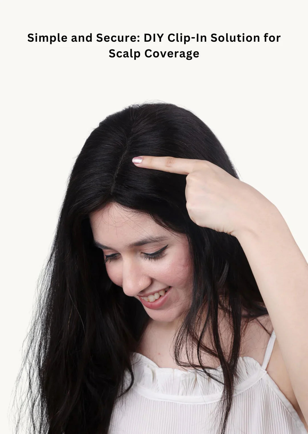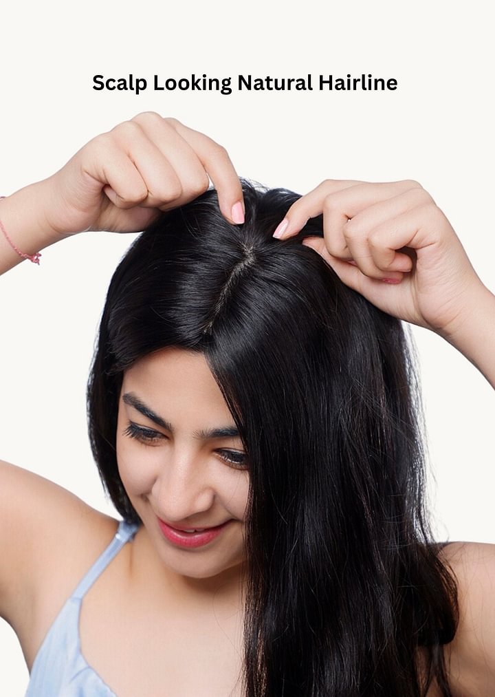 Step 1 - Place the topper where you want your hair parting to be. This can be in the centre or on the side.