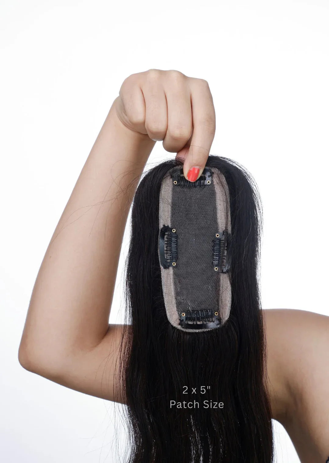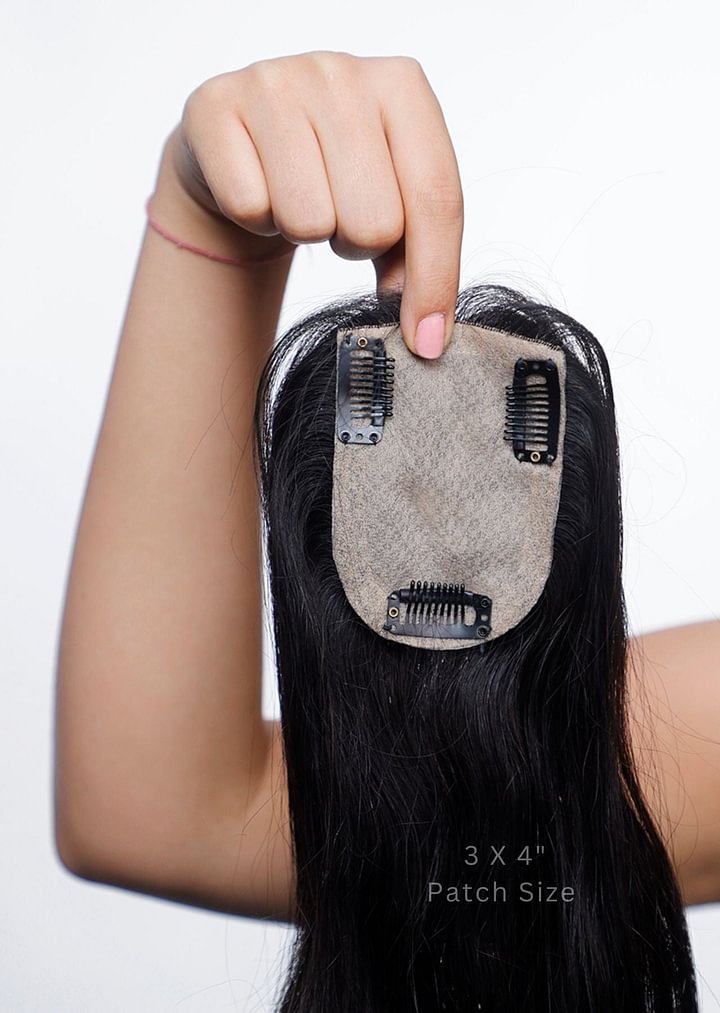 It comes with a 2x3 lace base that resembles the natural hairline and scalp, giving it an ultra-realistic look. The sturdy, built-in clips makes it hassle-free and super easy to use. Comes in a standard length of 12-14 inches. (Longer lengths can be customized)